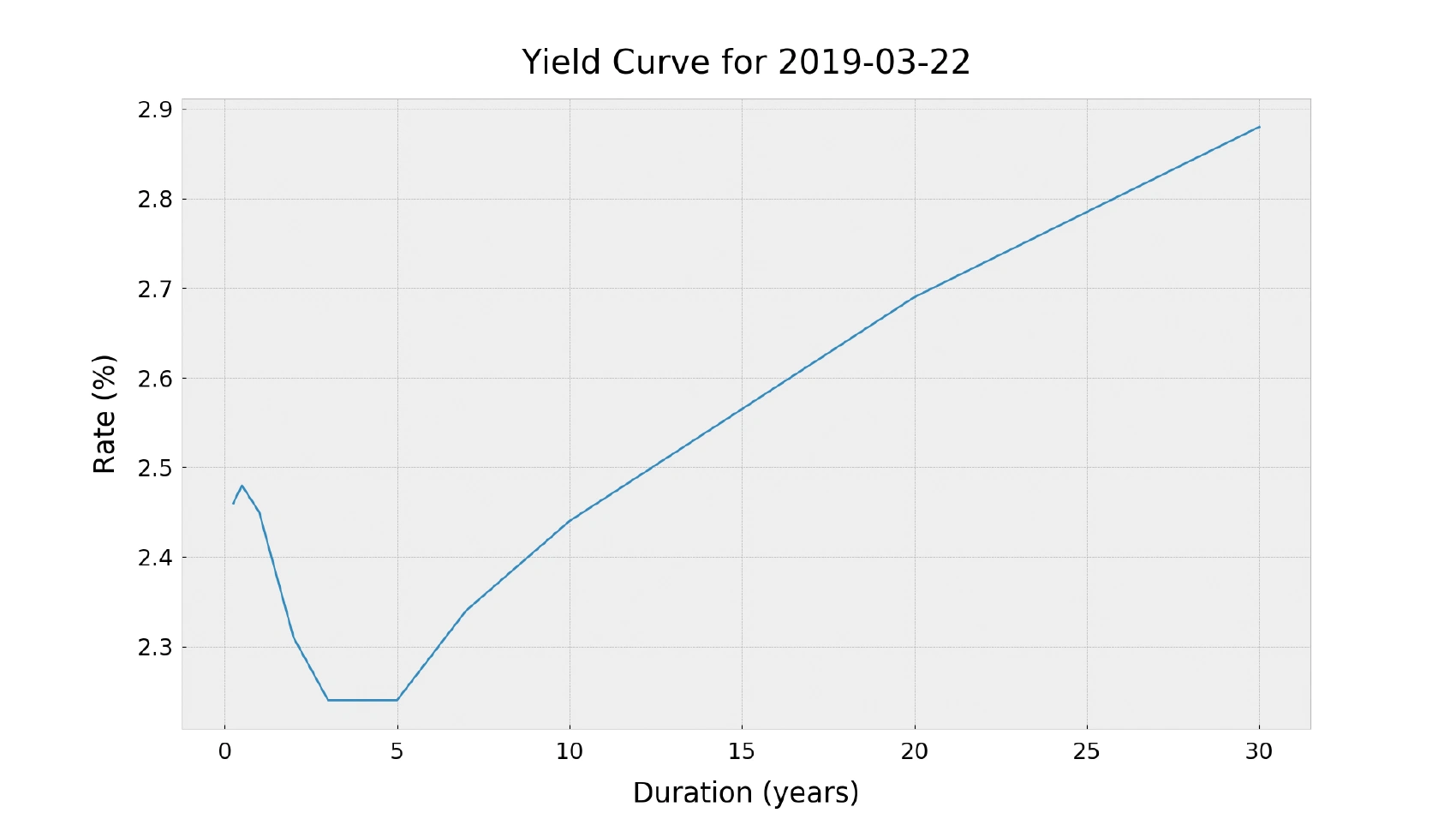 How does the yield curve look now? Not very well, actually. As you may see, it changed its shape, and it has become partly inverted: