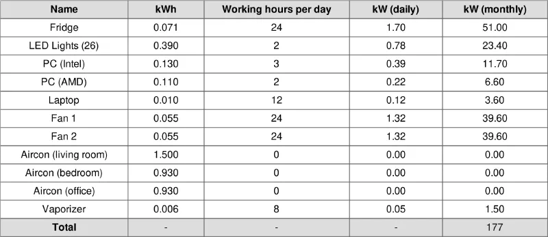 I got curious if I can bring my power consumption down and what are the effects of my electronic devices on the total bill. Air-cons were the main suspects, but it turned out that the main abuser is LED light. It might seem impossible, given that LED is advertised as a magical power-saving measure. Well, those lights aren’t that power-hungry, and they consume about 15W each, but there are 26 LED lights in my house, so it can easily add up to 390 kWh.