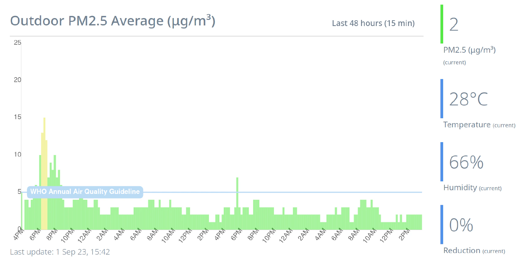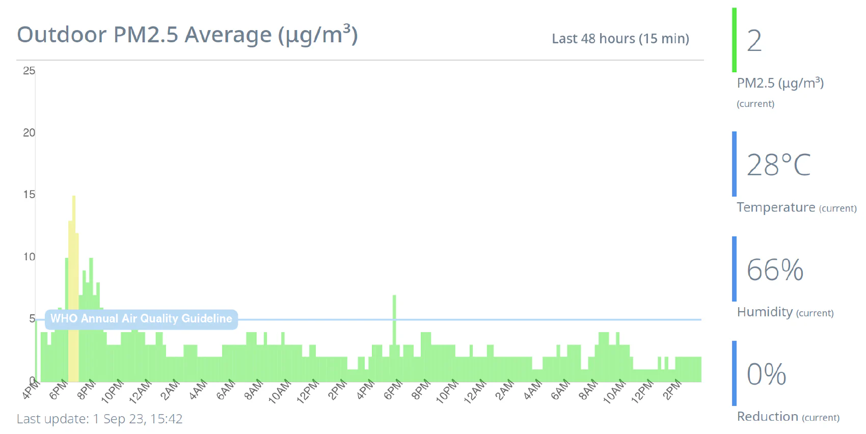 - PM 2.5 often exceeds 5 μg/m3, which is a WHO safe air threshold. Those spikes often coincide with ventilation, which hints that the outdoor air isn’t always as clean as I thought.