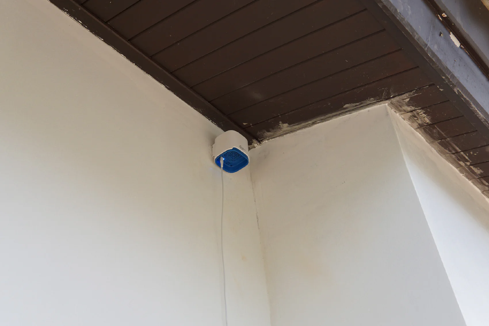 I choose a 10 cm padding from the roof and the wall on the right. I was pretty anxious about the powerline, so I turned off the corresponding switches and checked the wires with a non-invasive voltage detector. Also, I paused the drilling process a few times just to make sure there is no plastic fragments in the holes or among the dust. Needless to say, you should also make sure that the ladder is stable, and you should wear some protective equipment such as a dust mask and a pair of glasses.