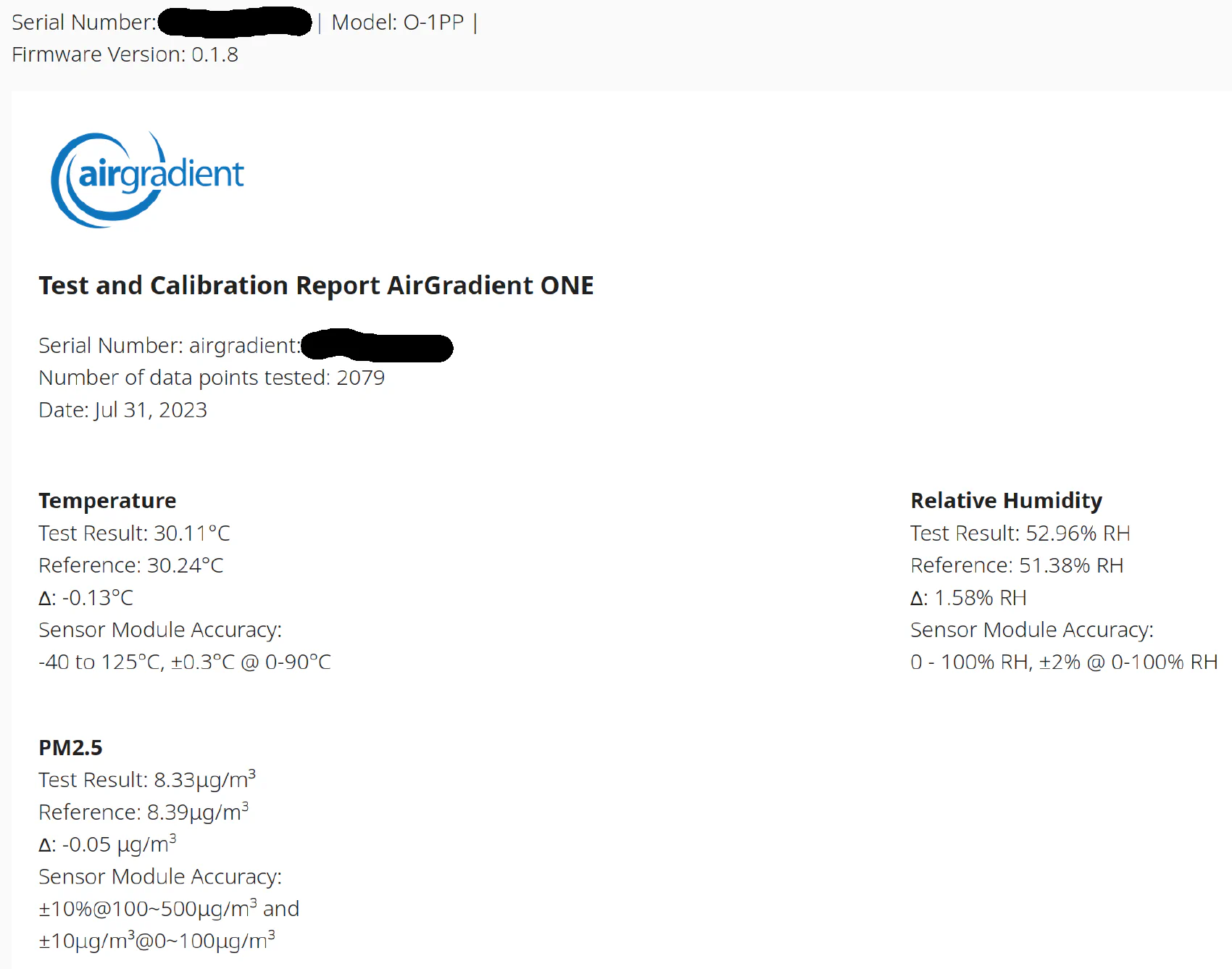 - Every pre-assembled uint is tested by AirGradient, and you can always fetch your test report from your AirGradient dashboard.