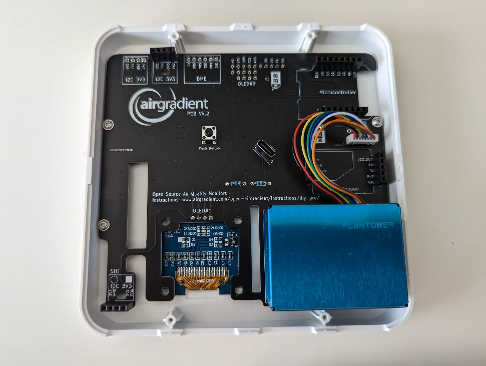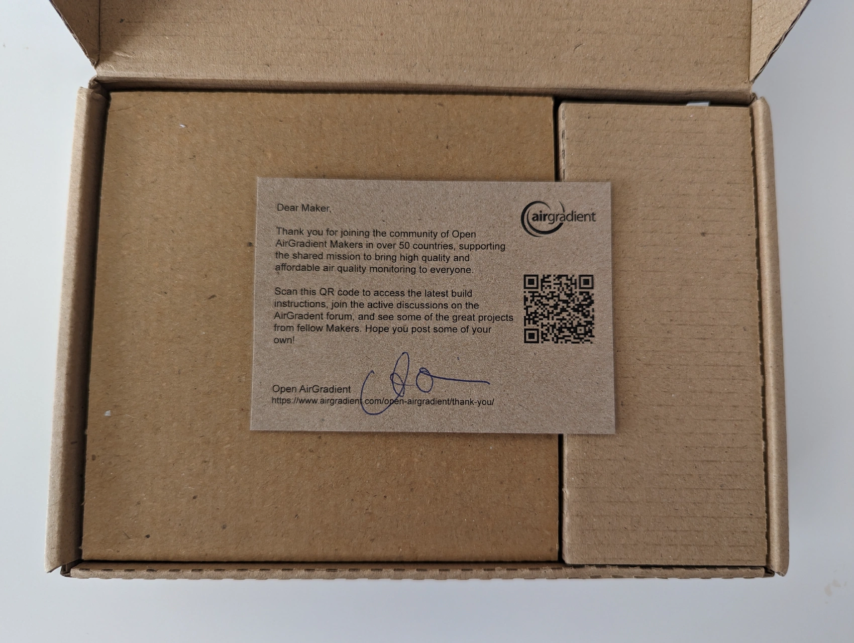 I expected to find an assembly instructions in the package, but I found a QR code instead. Scanning that code redirects you to AirGradient website, where you can find the assembly instructions. Websites are more ephemeral than the physical boxes, so I don’t really like the idea of introducing such a dependency, but it makes total sense if you want to cut costs and be able to edit the assembly instructions after shipping the product.